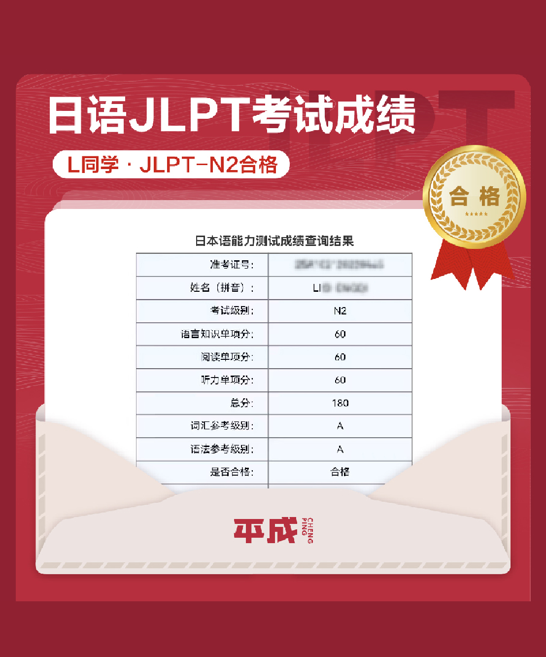 L同学在2025年8月的JLPT考试中获取180分